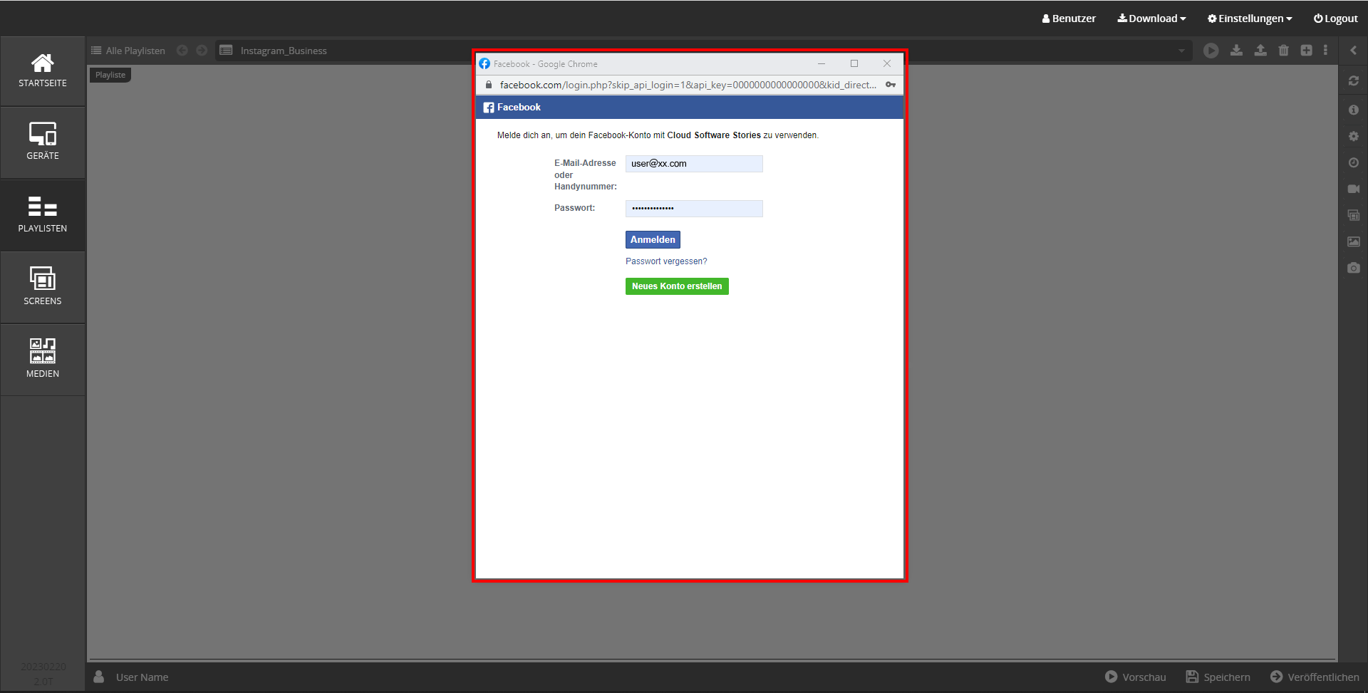Die Einbindung Ihres Instagram Accounts findet in der Cloud Software über Ihren Facebook Login statt. Daher muss Ihr Instagram Business Account mit Facebook verbunden sein.