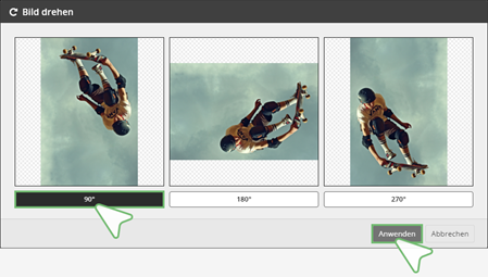 Bild drehen: Um die Ausrichtung eines Bildes in der Playliste anzupassen, klicken Sie auf → Bild drehen. Es öffnet sich das nachfolgende Fenster.