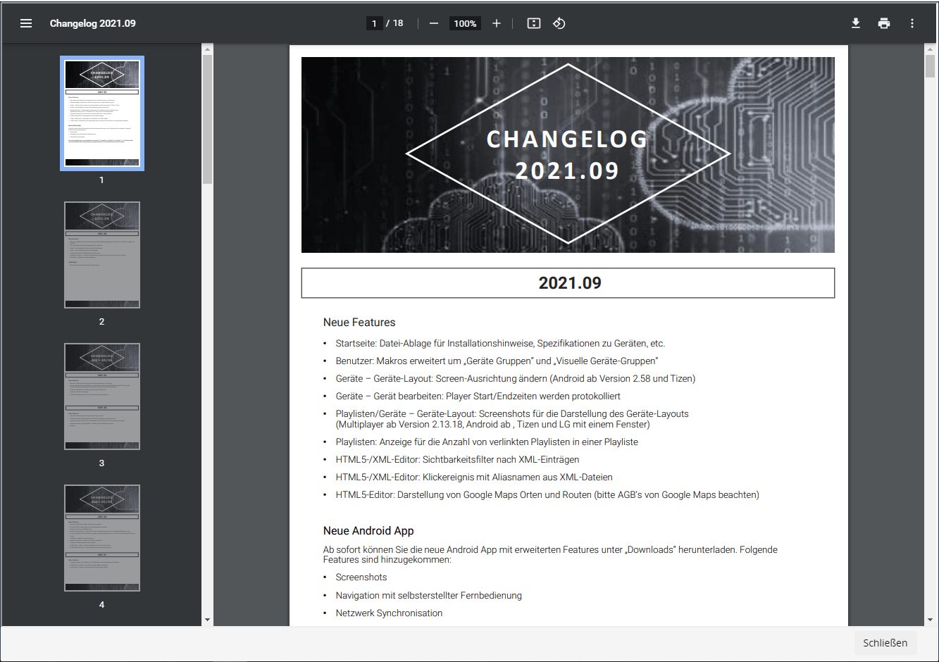 Mit Klick auf → Changelog rufen Sie das Änderungsprotokoll auf, in dem alle Veränderungen an der Cloud Software dokumentiert werden.