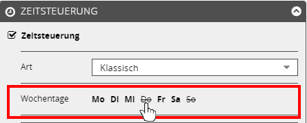 Deaktivieren Sie die Wochentage, an denen der Inhalt nicht abgespielt werden soll, durch Anklicken des betreffenden Wochentagskürzels.